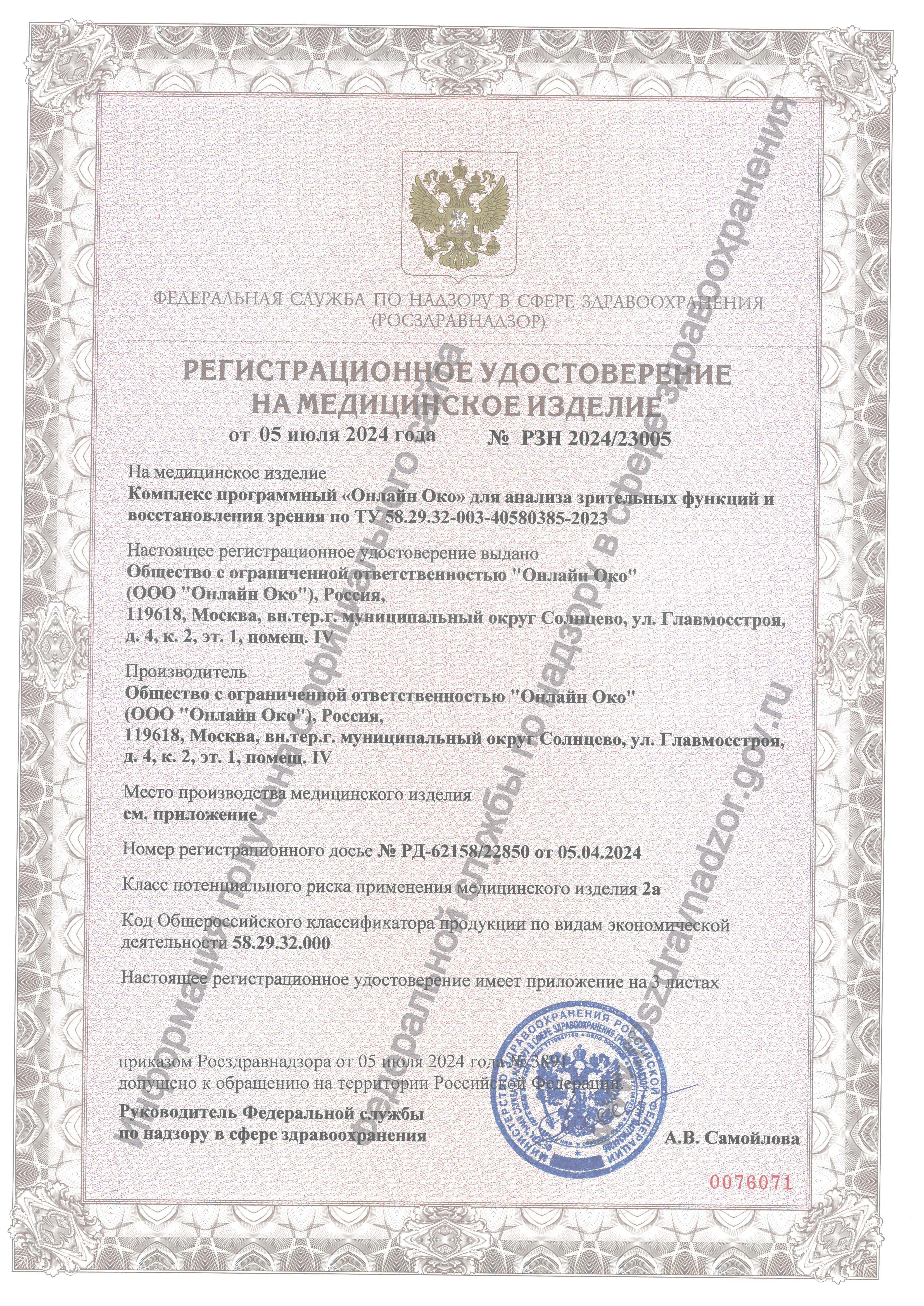 для телемед-офтальмологии «Онлайн Око» (Сервис).